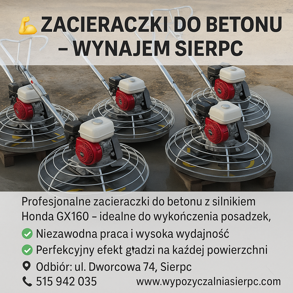 Do wynajęcia profesjonalne zacieraczki samojezdne Power Trowel 2×90 cm – idealne do…